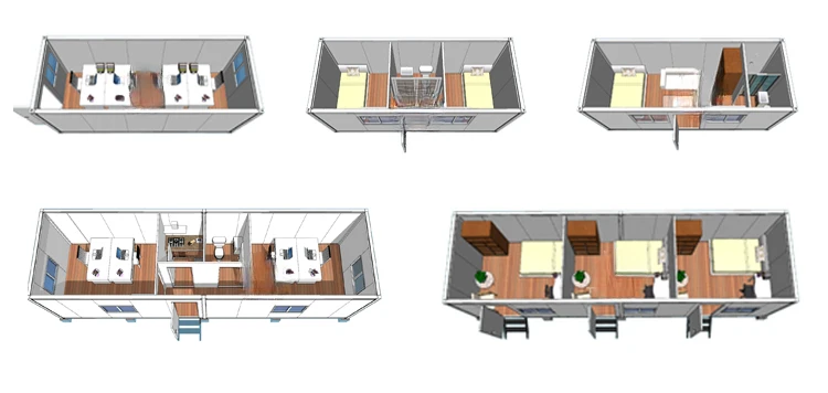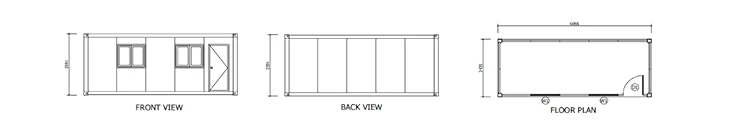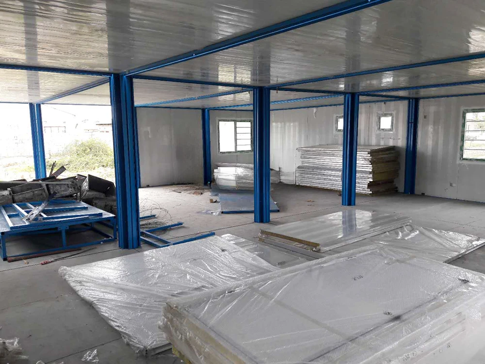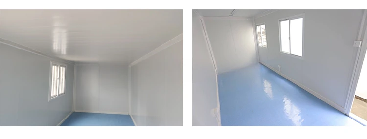 The interior size of our standard container house is 5.655m*2.235m*2.23m(L*W*H).All the steel structure is hidden inside the walls.
