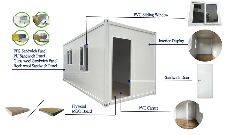 Safety and Durability: Constructed with a steel frame and flame-retardant foam wallboard, this container home prefabricated is waterproof and thermally insulated. It's earthquake-resistant (grade 8) and wind-resistant (grade 10).
