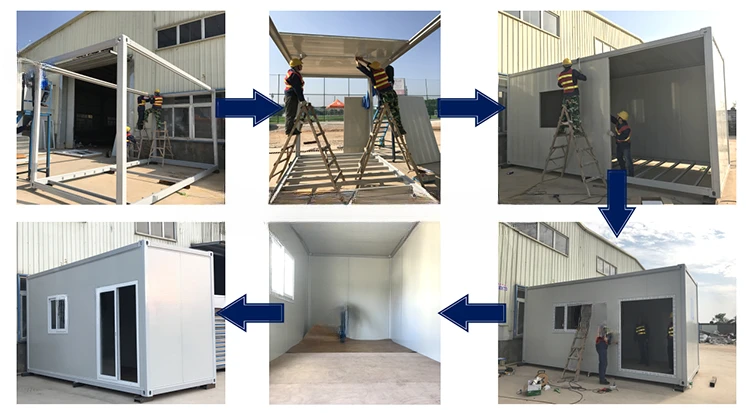 Our container house use bolts for assemble,no welding, no crane, no forklift! It's easy to install, 4 workers can install 2 units a day!